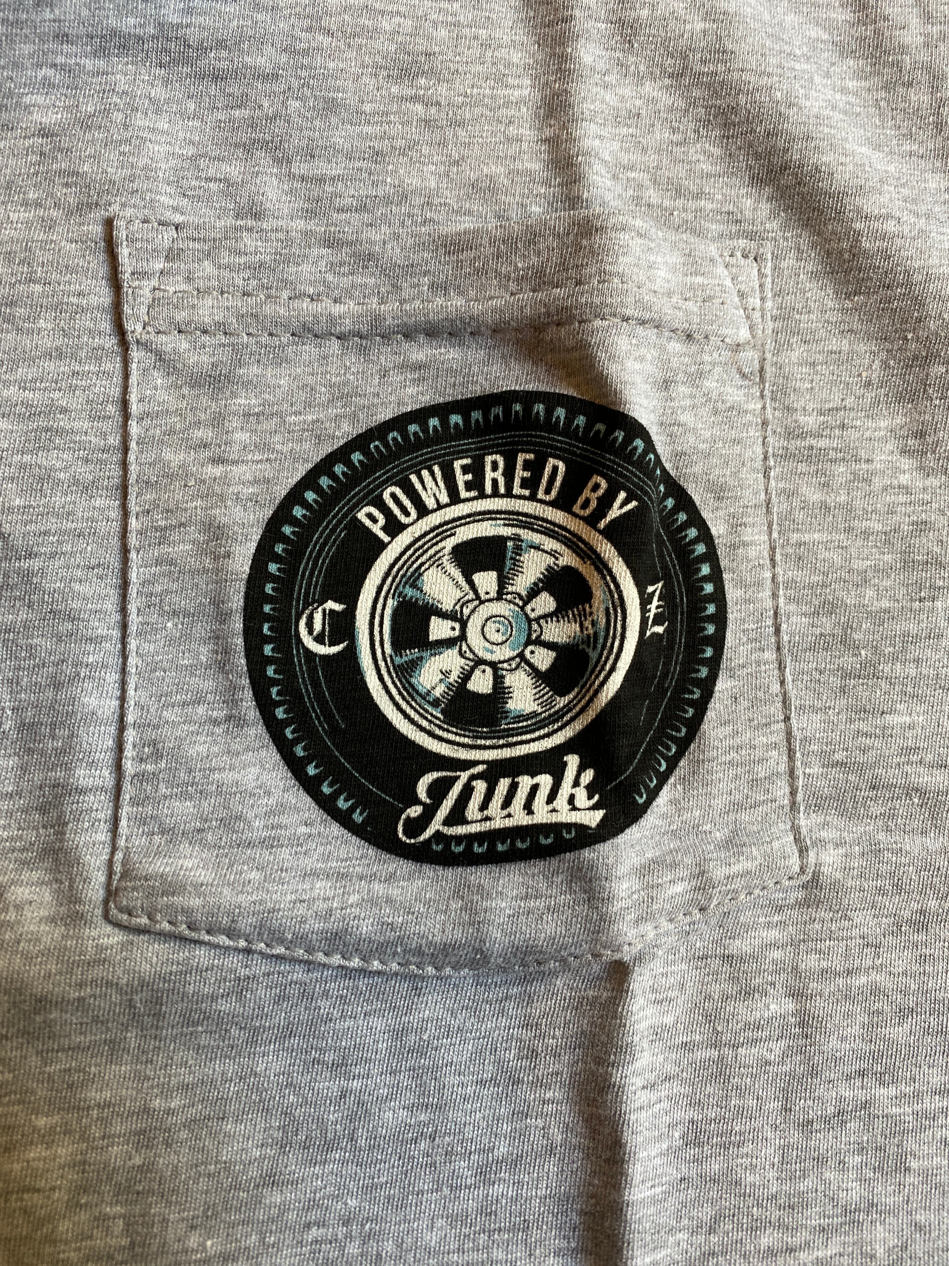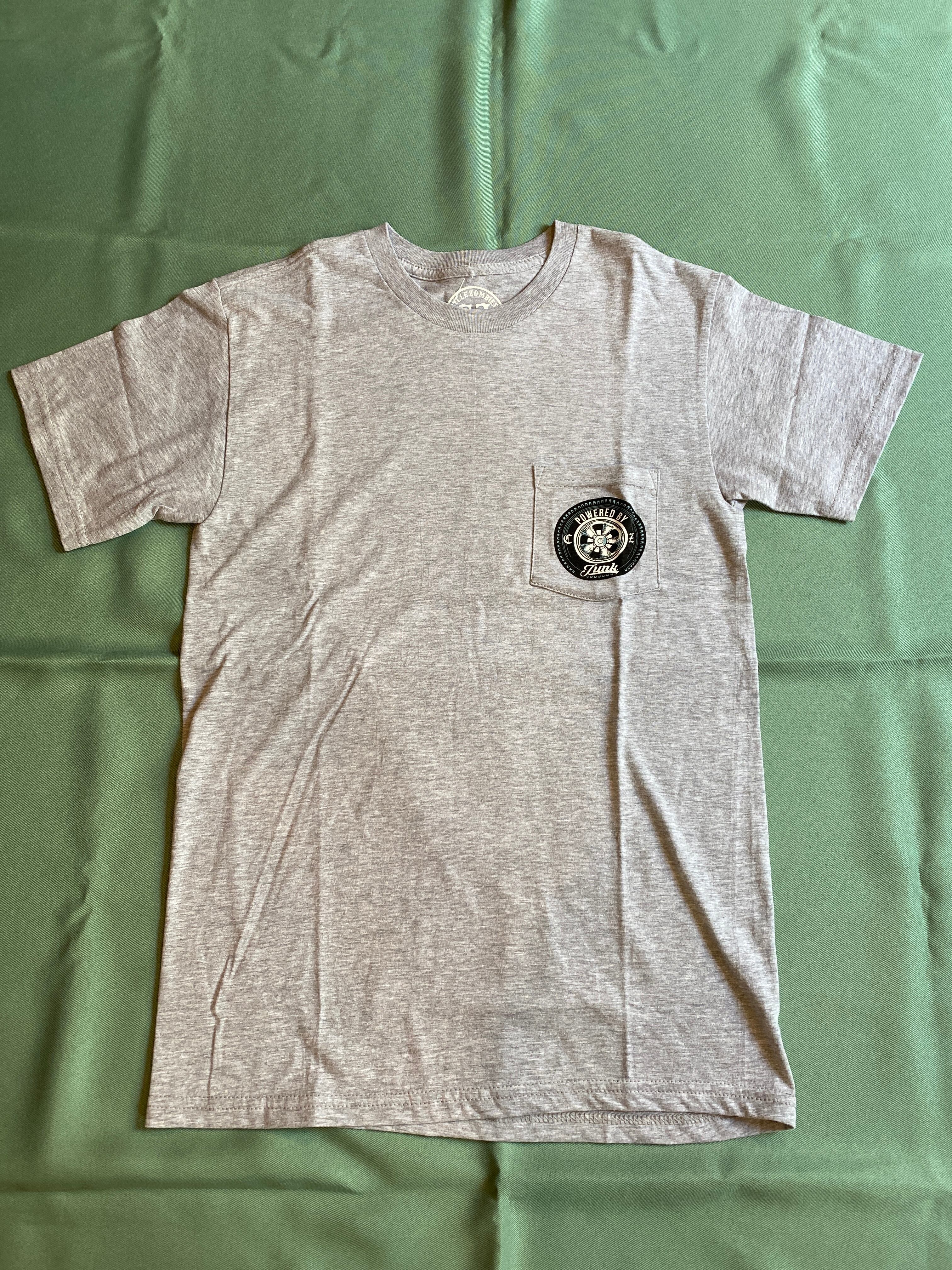 胸にワンポイント、バックには大きなプリントのポケットTシャツになります。やわらかく肌触りの良い4.3ozボディになります。